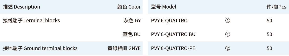■侧面设计的直通式接线端子、多导线接线端子和接地端子