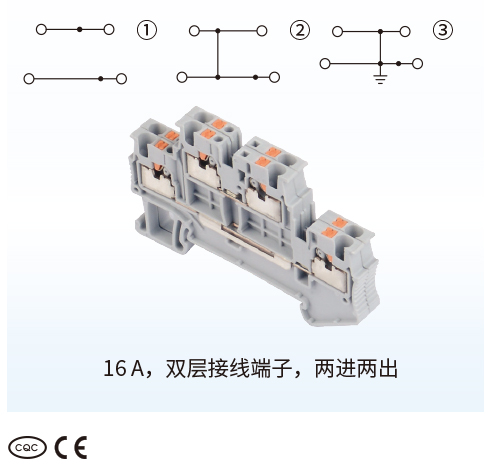 ■16A,双层接线端子,两进两出