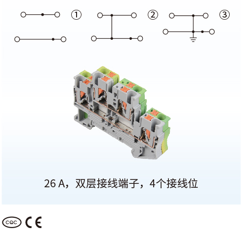 ■26A,双层接线端子,4个接线位