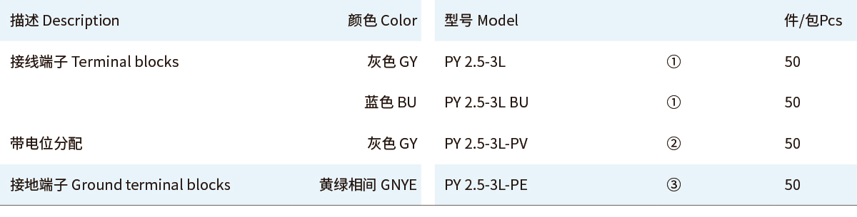 ■直通式接线端子和接地端子