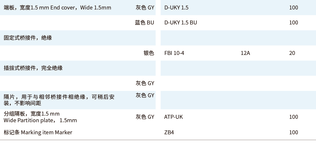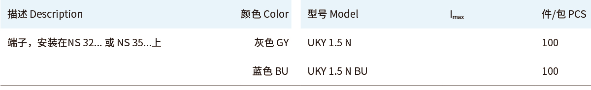 ■ UKY通用组合式接线端子■ 直通式接线端子UKY■ 1.5 (1.5) mm²,17.5 A,直通式接线端子■ UKY 系列通用连接端子能够满足实际应用所需的特征■通用安装脚,可用于DIN导轨NS 35...和 NS 32... 上■通过端子中央或插拔式桥接件进行等电位分配■满足大电流的桥接功能