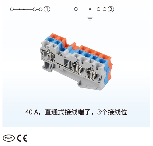■ 40A,直通式接线端子,3个接线位